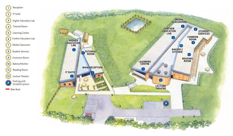 There is discounted car parking nearby and a cycle shelter and showers for those who wish to come to college the green way. There are also electric car charging points.